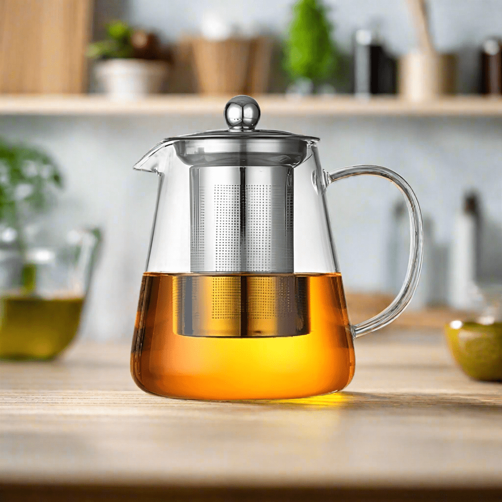Elegante Glaskanne mit Edelstahl-Teesieb – Hitzebeständig und Stilvoll