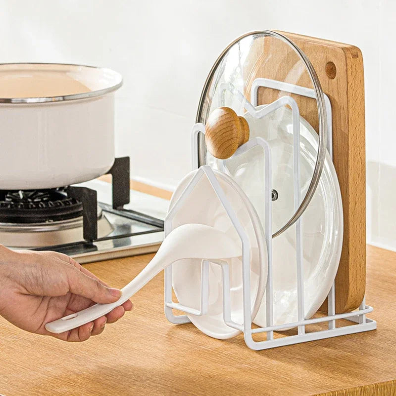 Eleganter Küchenorganizer für Topfdeckel und Schneidebretter