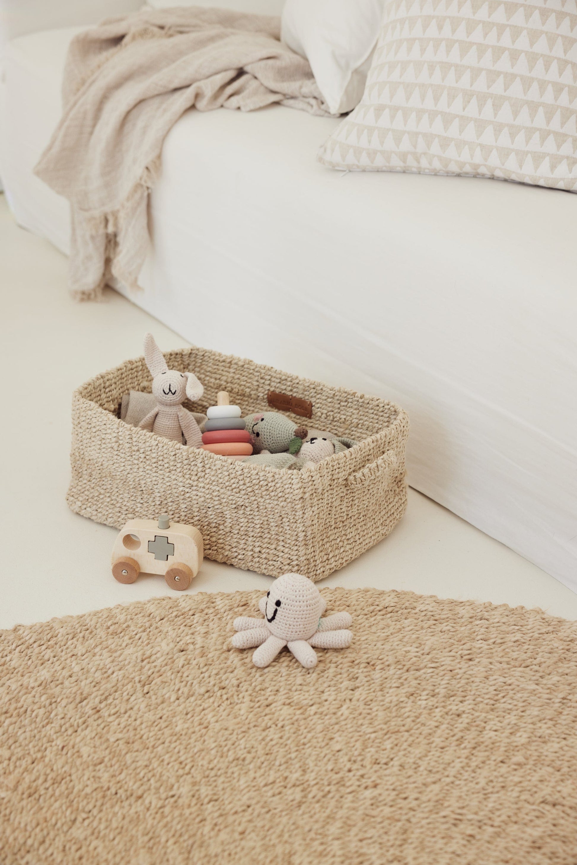 Seine klaren Linien und die harmonische Form fügen sich nahtlos in jede Einrichtung ein, während die sanften, natürlichen Farben eine warme Atmosphäre schaffen. Ob als stilvolle Aufbewahrungslösung für Decken und Kissen oder als dekoratives Element im Wohnzimmer – der Sona Rechteckkorb verleiht jedem Raum einen Hauch von Luxus.